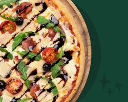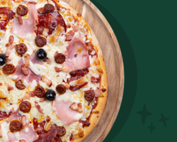 Sauce tomate, mozzarella française, émincés de poulet rôti (Halal), sauce barbecue, crème de cheddar, poivrons frais.