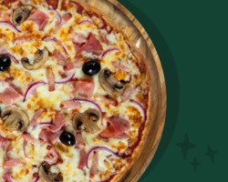 Sauce tomate, mozzarella française, viandes kebab (Halal), sauce blanche, oignons rouges.