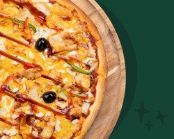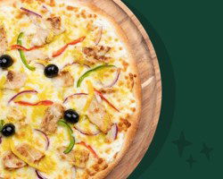 Sauce tomate, mozzarella française, émincés de poulet rôti (Halal), sauce barbecue, crème de cheddar, poivrons frais.