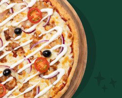 Sauce tomate, mozzarella française, viandes kebab (Halal), sauce blanche, oignons rouges.